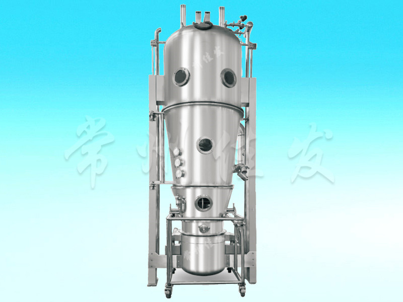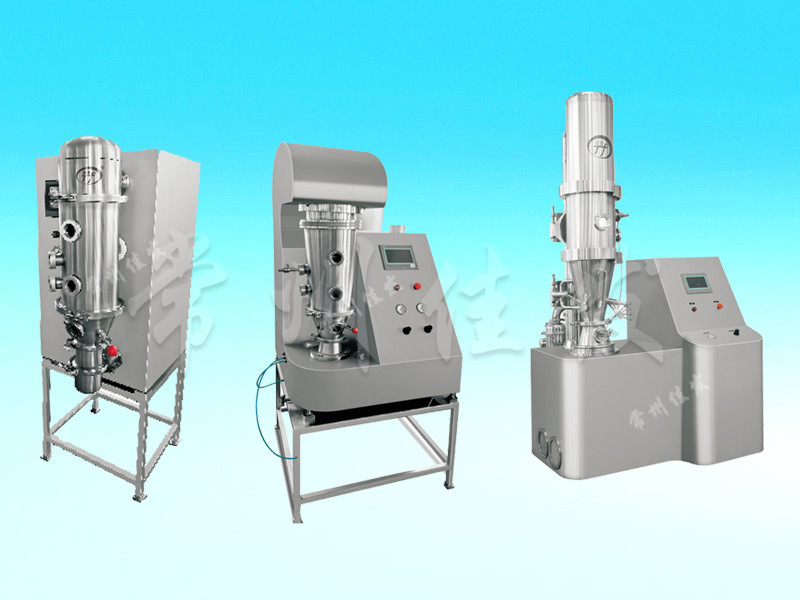 物料粉末粒子,在原料容器(流化床)中呈環形流化狀態,受到經過凈化后的加熱空氣預熱和混合,將粘合劑溶液霧化噴入,使若干粒子聚集成含有粘合劑的團粒,由于熱空氣對物料的不斷干燥,使團粒中水分蒸發,粘合劑凝固,此過程不斷重復進行,形成理想的、均勻的多微孔球狀顆粒。