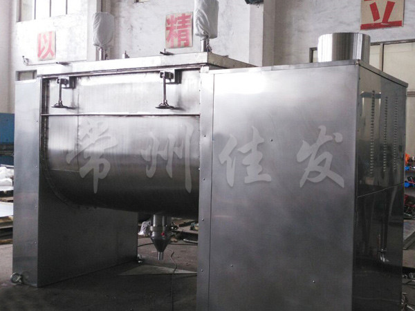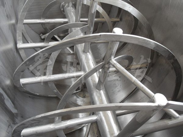 該機型由容器 螺旋攪拌葉片和傳動部件組成,螺旋葉片一般做成雙層或三層,外層螺旋將物料從兩側向中央匯集,內層螺旋將物料從中央向兩側輸送,形成對流混合。容積可做成圓形,以便夾套及于反應干燥。